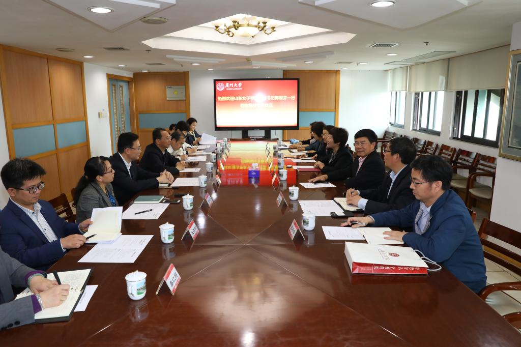 4月16日下午,厦门大学党委副书记、纪委书记赖虹凯热情接待了郭翠芬一行,并举行了座谈会。座谈会上,赖虹凯简要介绍了该校的发展历史及办学特色。郭翠芬对该校的热情接待表示感谢,并指出,厦门大学办学历史悠久,办学理念、管理模式先进,为我校推进高质量特色发展提供了宝贵经验。校党委委员、组织部长孙理从发展历程、办学传统、办学特色等方面介绍了该校的情况。双方还围绕基层党组织建设、党风廉政建设、校园文化建设以及妇女/性别研究与培训基地发展等议题展开对口交流。会后,郭翠芬一行参观了该校校史馆,并实地考察了校园环境建设。