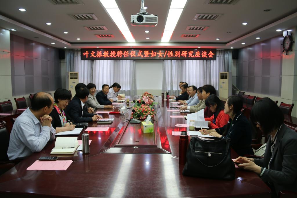 聘任仪式后,学校举行了妇女/性别研究座谈会。性别平等与妇女运动史、性别与女性文学、性别与媒介三个妇女/性别研究团队负责人汇报了团队建设情况,叶文振教授给予了充分肯定和具体指导。并指出,作为女子高校,要进一步转变观念,把女性学学科建设、妇女/性别研究、女性高层次人才培养和特色校园文化建设结合起来,以特色发展提升学校核心竞争力。与会人员还围绕女性学课程体系建设、妇女/性别研究团队建设和女性人才培养等问题进行了深入交流。