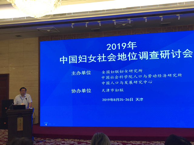 8月25-26日,2019年中国妇女社会地位调查研讨会在天津召开。此次会议主题为中国妇女社会地位的变迁与现状。研讨会由全国妇联妇女研究所和中国社会科学院人口与劳动经济研究所、中国人口与发展研究中心联合主办,天津市妇联协办。我校妇女研究与发展中心负责人等一行8人与40个高校及研究机构的专家学者和妇联干部参加了会议。全国妇联副主席、书记处书记谭琳发表书面致辞。中国人口与发展研究中心主任贺丹、天津市妇联副主席贾雪娜、中国社会科学院人口与劳动经济研究所研究员郑真真发表致辞,全国妇联妇女研究所副所长、研究员姜秀花主持开幕式。