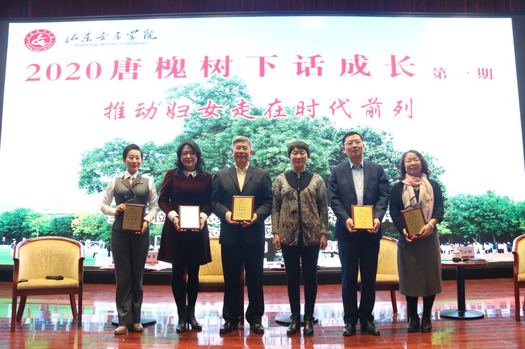 11月12日晚上,由妇女研究与发展中心、校团委主办的“2020唐槐树下话成长:推动妇女走在时代前列”在图书馆二楼报告厅举行。党委委员、副校长侯素美出席对话会并为嘉宾颁发纪念牌。对话会由中国妇女研究会副会长、学校特聘教授叶文振主持,山东大学法学院教授、山东省妇联兼职副主席王丽萍,山东省妇女发展研究中心主任助理、研究室主任孙伟;山东大国之礼文化研究院院长、中国社科智库国家战略人才库专家兰宗晓,学校社会与法学院院长闫小红等应邀参加对话。