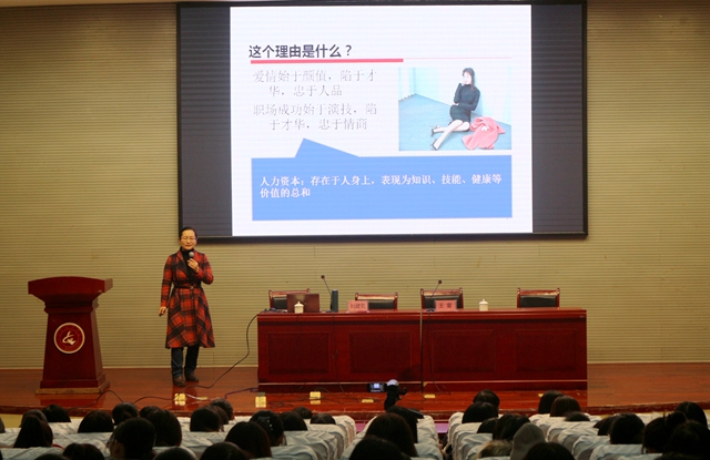 讲座中,刘博士从女性立场出发,剖析了职场和婚姻的核心竞争力,深刻阐述了人力资本的重要性,并对当代女大学生寄予厚望,希望她们能够通过自己的努力,提高自我管理能力,拓宽婚姻与职场竞争途径,收获美丽人生。